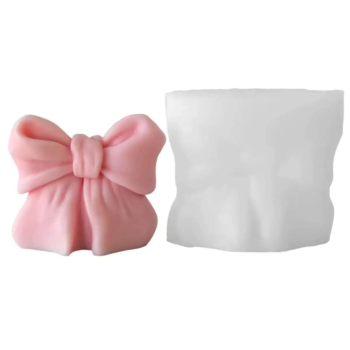 Forma silikonowa do świec w kształcie uroczej kokardy, umożliwia tworzenie eleganckich świec wolnostojących do Twojego wnętrza. Wykonana z elastycznego, trwałego silikonu zapewnia łatwe zalewanie woskiem i bezproblemowe wyjmowanie świecy. Doskonała do świec sojowych, dekoracyjnych i sezonowych kolekcji. Sprawdzi się również jako element we flower boxie.