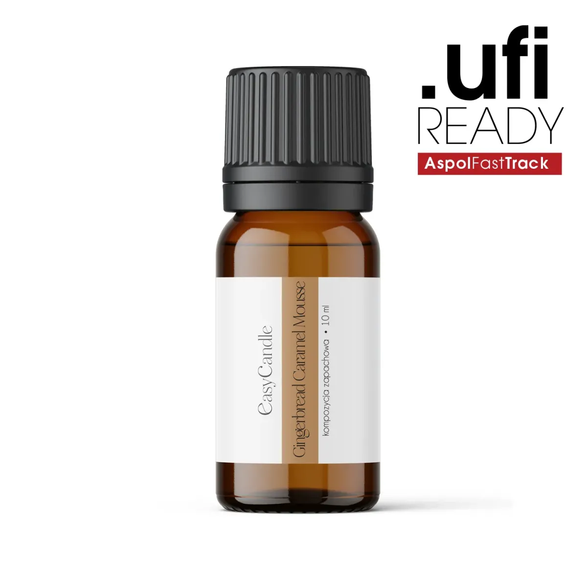 Gingerbread Caramel Mousse - rozpływający się w ustach piernik polany gęstym, maślanym karmelem. Słodka i otulająca kompozycja, w której korzenne przyprawy spotykają się z kremowym karmelem, wanilią i nutą kokosa. Idealny zapach do świec i wosków, które mają wypełnić wnętrze ciepłem domowych wypieków i świątecznej beztroski.Słodki i korzenny aromat piernikowego ciasta z delikatną cytrusową nutą. Gingerbread to zapach przywołujący wspomnienie świątecznych wypieków – ciepły, otulający, z wyraźnym akcentem cynamonu, goździków i waniliowych ciasteczek. Idealny do świec i wosków, które mają wprowadzić magię zimowych wieczorów i domowego ciepła.