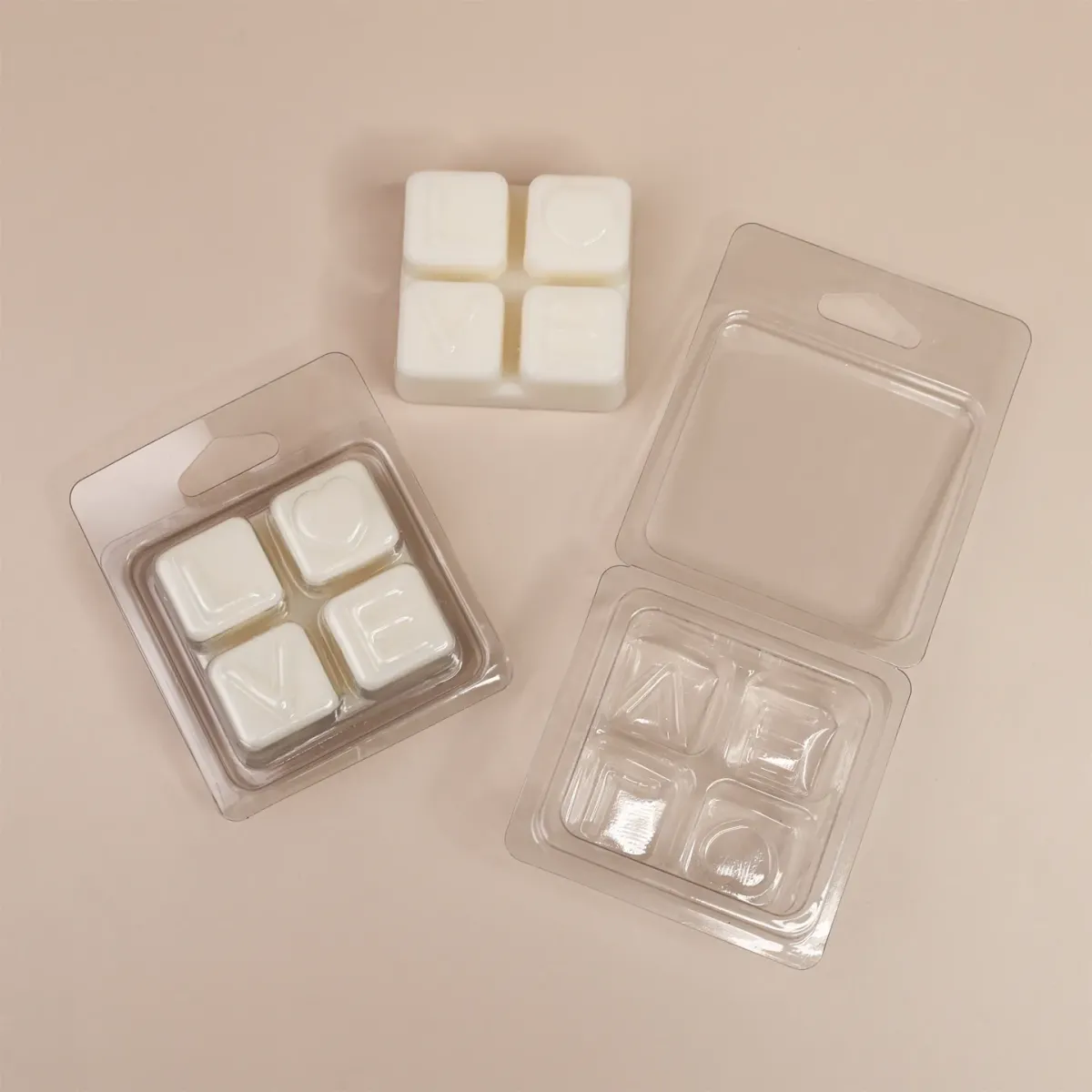 Clamshell to wysokiej jakości opakowanie i forma do wosków zapachowych (wax melts) do kominków ceramicznych. Wykonany z grubego, wytrzymałego tworzywa PET, zapewnia estetyczny wygląd, trwałość oraz bezpieczeństwo użytkowania. Dzięki szczelnemu zamknięciu clamshell skutecznie chroni woski zapachowe przed wietrzeniem, pozwalając na długi czas utrzymać intensywność zapachu. Wosk nie traci aromatu, co ma kluczowe znaczenie przy sprzedaży.