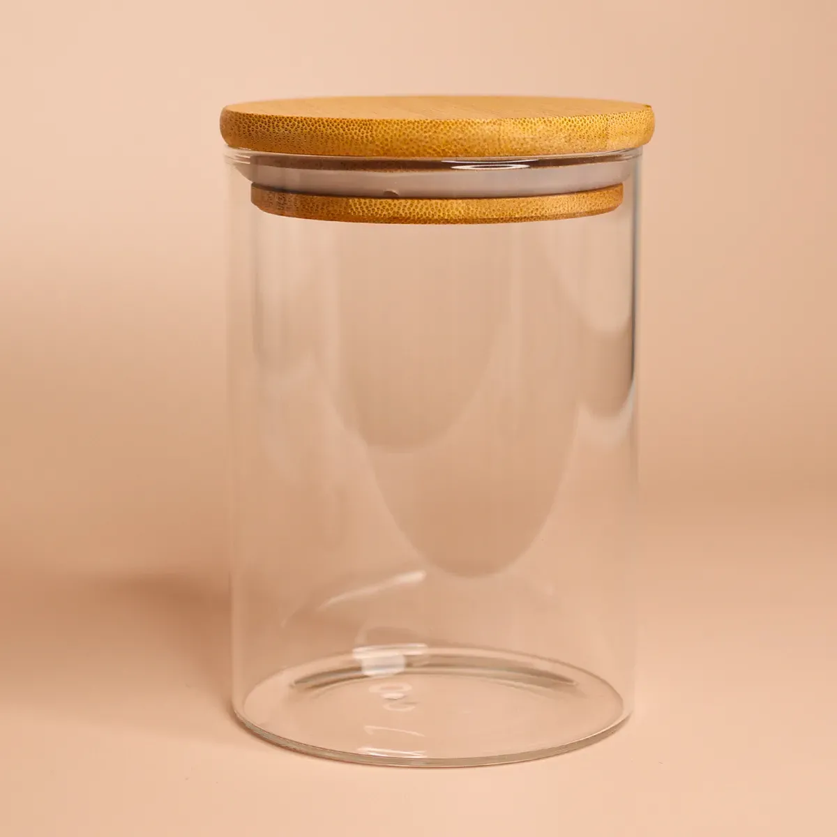 Pojemnik szklany z cienkiego szkła z bambusową pokrywką - Thin