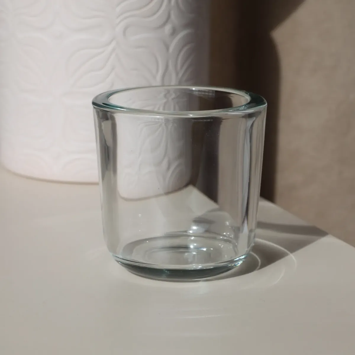 Pojemnik szklany do zalewu świec, wykonany z bardzo grubego szkła. Produkowany w Polskiej hucie szkła.